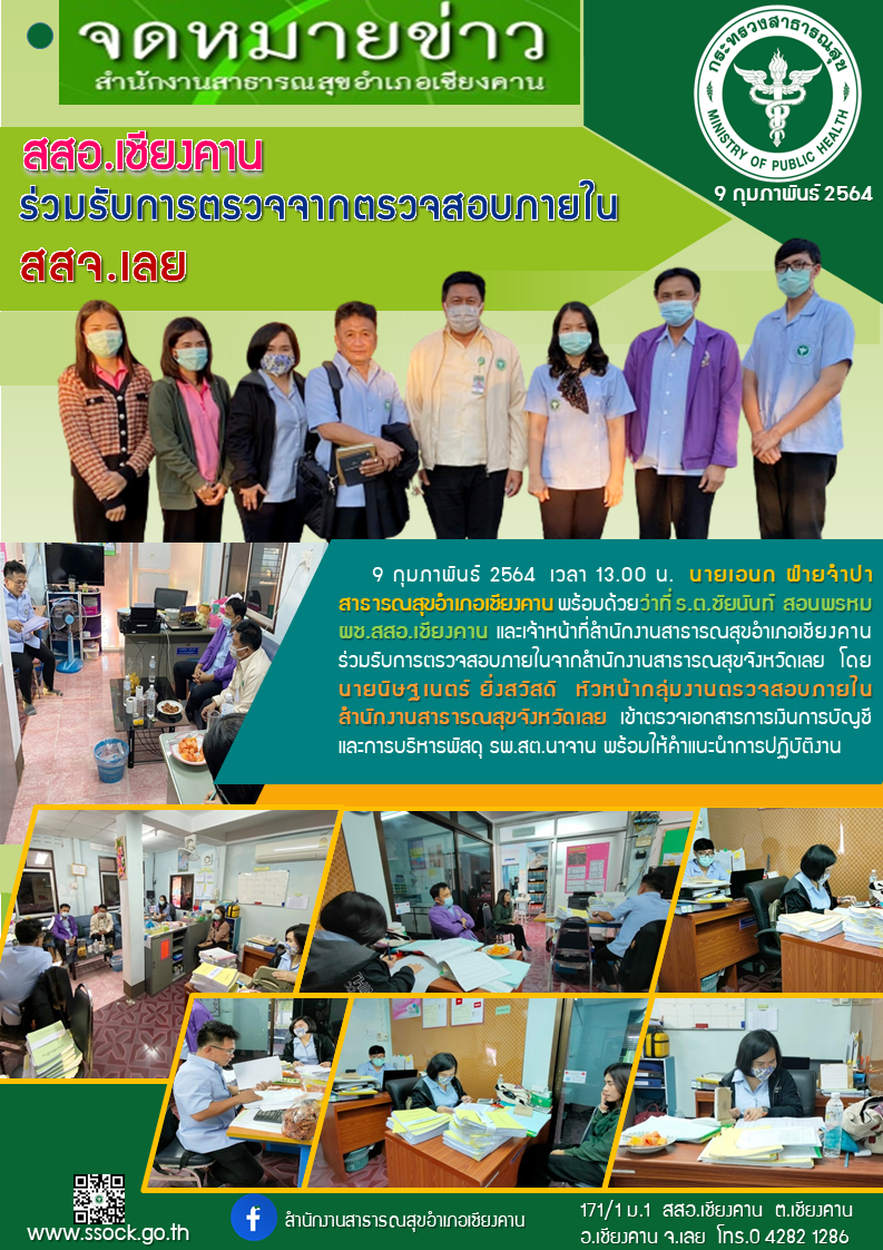 สำนักงานหลักประกันสุขภาพแห่งชาติ เขต 8 อุดรธานี ตรวจสอบการใช้จ่ายงบค่าเสื่อมของหน่วยบริการ ปีงบประมาณ 2562 และติดตามความก้าวหน้าการดำเนินงาน ปีงบประมาณ 2563 ณ โรงพยาบาลเชียงคาน และลงพื้นที่รพ.สต.บ้านโพน